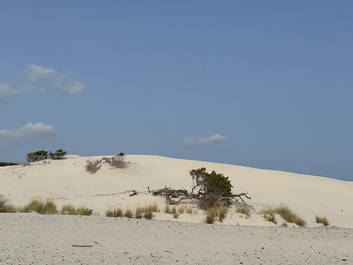 Read moreHo visitato nuovamente, dopo quasi trent’anni, la spiaggia Dunas Blancas ( dune bianche ) di Porto Pino e sono stata felice di averla trovata ancora molto bella, con acqua cristallina tiepida e vento che fa respirare anche con 36 gradi. Il vento però era troppo … ma al meteo non si comanda. O si accetta e ci si attrezza o si va via. Maestrale fresco o scirocco caldo. Ombrellone e tiranti di rinforzo oppure tenda paravento. Mi hanno dato sinceramente fastidio due stabilimenti balneari, tra l’altro mezzi vuoti perché costosi, che portano via posto in una zona tradizionalmente “libera”. E poi …, un chiosco bibite e panini va bene .., due bar veri e propri che sono stati piazzati su un rialzo e godono di un tetto di canne che costituisce un altro rialzo … mi hanno fatto desiderare i piccolissimi punti ristoro della spiaggia di Mas Palomas a Gran Canaria o altri simili su spiagge greche. Se non abbiamo il bar moriamo di sete? Prendiamoci la nostra bibita al chiosco e beviamocela sotto il nostro ombrellone! Non parlo di prezzi, parlo di spazio vitale occupato per niente e tolto ai bagnanti! Il parcheggio costa 7 euro e li merita, si fa un po’ di strada per la spiaggia … può andare … ma liberatela dai bar! Oltretutto, Porto Pino vive una crisi dovuta alla inesistente manutenzione che il Comune di competenza dedica alla spiaggia più strettamente “cittadina” del luogo! La spiaggia detta “prima spiaggia”’ fa letteralmente schifo per i bagnanti, attualmente, riempita com’è di foglie morte di posidonia, la pianta marina che perde le foglie nella sua stagione di elezione, credo l’autunno. Le foglie morte vengono accumulate dal mare sulla spiaggia e, se si tolgono o se ne regola la quantità annualmente, la spiaggia è viva per i bagnanti, altrimenti le foglie nastriformi disgregate imprigionano la sabbia e si forma col tempo un bel cemento biologico che è totalmente naturale e nutritivo per il mare una volta decomposto, ma che uccide la balneazione perché puzza un po’ di marcio, attira insetti e non piace a nessuno ovviamente! Tranne agli ambientalisti “talebani” che credo preferiscano veder morire una spiaggia rispetto alla balneazione, che non rompere le scatole e lasciare che il Comune pulisca periodicamente o almeno limiti il quantitativo di roba che si accumula. Chi scrive è un biologo, non scrive a vanvera! Qui si scelga che politica portare avanti! O si lascia tutto alla natura e basta con stabilimenti balneari, bar, esercizi commerciali , parcheggi e turismo, o si collabori ragionevolmente con la natura limitandone gli effetti invasivi! Scelga il Comune di competenza cosa desidera! Io, se fossi uno che ha comprato casa a Porto Pino pianterei una grana spaziale… da biologo, non da pseudo ambientalista della domenica! Attualmente, si deve migrate tutti alla spiaggia delle dune … bel casino! Vissuto personalmente! Ho visto la spiaggia infestata e purtroppo avevo il telefono scarico quindi foto non ne ho… tante recensioni le mostrano! Qui sono anni che l’ambientalismo ottuso lavora … ed il Comune no! E adesso, chi non capisce un tubo di ambiente, per non far migrare tutti alle dune, protette giustamente, cosa mi inventerà? Il numero chiuso? Come diceva Totò .. MA MI...