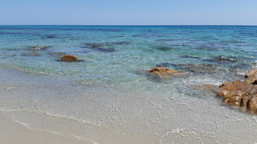 Read moreSpiaggia bellissima, sabbia bianca, finissima, acqua cristallina dal bianco al celeste all azzurro a seconda della luce. A tratti sulla battigia nella sabbia finissima sembrano incastonate le pietre di granito sardo. Quindi riflessi sulla riva color oro, rosa e rossiccio al tramonto! Tranquilla, con la macchia mediterranea e pineta alle spalle! Acqua calda limpida e bassa per molti metri! Da provare...