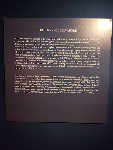 Read moreIl museo è ospitato in spazi adeguati e il palazzo è perfettamente restaurato. Si ripercorre in modo speciale il medioevo a Tivoli attraverso una mostra che con pannelli, video e istallazioni ad alta definizione permette di vedere le ricchezze artistiche, storiche e culturali della città nel periodo storico menzionato. Tutti manufatti e reperti che in buona parte sono dislocati altrove nella città. Il limite del museo è proprio quello di essere un percorso quasi multimediale più che un museo. Si apprezzano tuttavia i vari ingrandimenti fotografici....