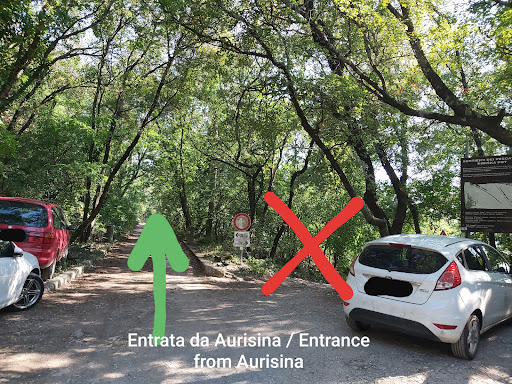 ITA Entrate dal parcheggio segnato su google maps come "Tiziana Weiss(Sage)Trail Car Park", seguite i segni del sentiero rossi e bianchi sugli alberi col numero 1, oppure come dalla foto allegata, a questo bivio per andare al sentiero della salvia seguite il cartello bianco col numero 3 invece che il 2(che invece porta verso giu al sentiero dei pescatori).