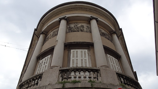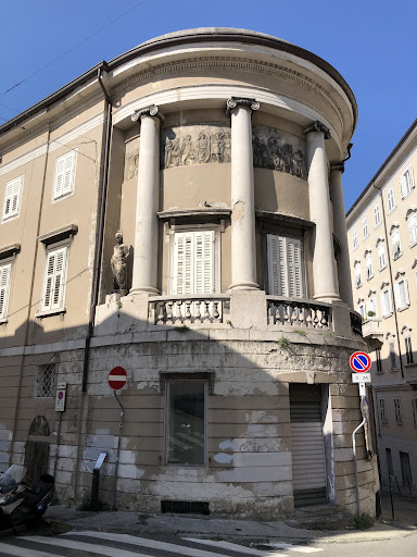 Read moreIl commerciante triestino Domenico de Pancera commissiona il lavoro nel 1806 all’architetto Matteo Pertsch. Sull’angolo acuto troviamo un tempio semicircolare con colonne giganti e capitelli ionici che sorreggono una cornice spessa. Nel muro tra le colonne si aprono tre porte-finestre con altorilievi rappresentanti scene greco-romane legate a Coriolano, Virginia uccisa dal padre e il sacrificio di Ifigenia. Tra le colonne ci sono delle statue poste su un basamento, raffiguranti Marte e Minerva, realizzate da Antonio Bosa.A metà dell’800 viveva nella Rotonda la famiglia di Felice Machlig, membro di una Loggia massonica, per questo motivo nacque il sospetto che gli scantinati ospitassero riunioni massoniche. Nei bassorilievi esterni del primo piano sono riconoscibili i simboli massonici: la squadra, il compasso...