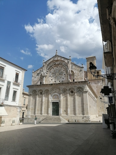 Read moreSplendido esempio di romanico pugliese con influenze normanno-arabe nell'utilizzo di una bicromia grigio verde negli archi cechi che caratterizzano le facciate laterali della cattedrale. Tracce della cultura ebraica e islamica si ritrovano sopratutto sul lato sinistro dell'edificio. Lo splendido monumento da sola giustifica una visita alla cittadina di Troia. Antichissima, fondata circa 2 secoli prima di Roma e conquistata da Annibale. Nel medioevo fu governata da potenti Vescovi-conti che ne fecero sede di diversi concili. Legata al papato si oppose a Federico II che per questo suo legame con il papa la distrusse. Ma il pezzo forte della facciata, oltre le porte di bronzo, è lo splendido rosone. Unico nel suo genere è vero e proprio merletto di pietra. L'interno svela una sovrapposizione di stili che coesistono tra le navate e il transetto. Romanico, gotico e barocco. Interessanti due resti di affreschi tardo medievali. Non dimenticate, prima di andarvene, di dare un'occhiata al...