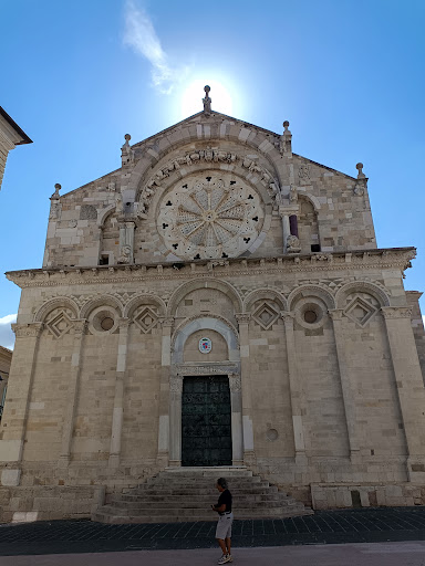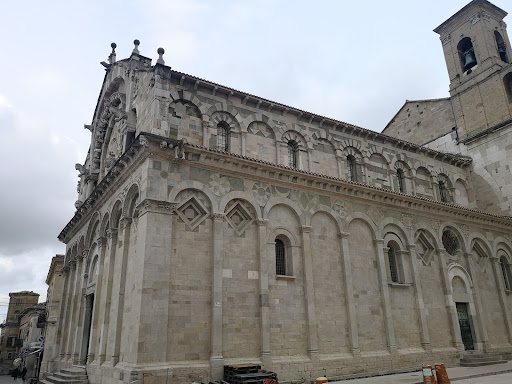 Read moreLa cattedrale si presenta con uno stilo del tutto unico, riscontrabile dalle caratteristiche della facciata principale di cui emerge in particolare il rosone. Rosone composto da 11 colonne volte a simboleggiare gli apostoli con l'esclusione del traditore Giuda Iscariota. Le 11 colonne possono essere suddivise in due nuclei: uno da cinque e uno da cinque, simboleggianti rispettivamente il macrocosmo e il microcosmo, quindi la loro unione. Specularmente all'interno le colonne del rosone salgono a tredici, simboleggiando in questo caso i dodici apostoli e Gesù. La struttura della concattedrale si presenta divisa in tre navate sorrette da due filoni di colonne composite e corinzie e di quattro pilastri di dimensioni superiori a quelle delle colonne. Particolarità unica della concattedrale è la presenza di due colonne affiancate entrando sulla destra, che portano il numero complessivo delle colonne a tredici. Ricorre anche qui il simbolismo apostolico. La pianta della chiesa è a croce latina, alle cui estremità del transetto si trovano due altari. Tra i vari ornamenti troviamo alcuni bassorilievi risalenti all'alto medioevo e alcuni affreschi. Le tre porte, ormai ossidate, erano...