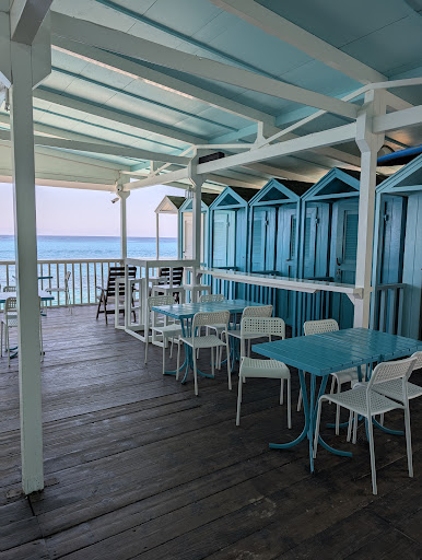 This place was amazing. We walks the full length from north to hear to find the perfect vibe for our day and we found it!! Truly awesome. We arrived before officially open and the older lad “pop” accommodated us right away. Two umbrellas, 4 drinks and two coffees all with in 5 minutes. The bar tender was awesome and the whole beach scene was great. Didn’t find food or drinks to be expensive at all! I have no idea what people expect to pay in a sea side tourist town but nothing at all was extra money from what we’ve been paying for the last 10 days on our travels from one beach’s to the next. This place felt like a nonna and nonno operation in the best possible way. The music started bumpin around 430 and the rotation of early people to later day people was happening and it rolled right on til sunset. Highly recommend. Worth the walk south. And to those who said they were treated rude or go booted from a chair I would say they brought that on themselves selves. I’m Canadian and we’re the only English people here and well...