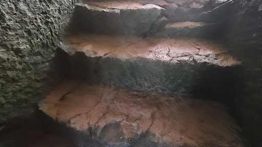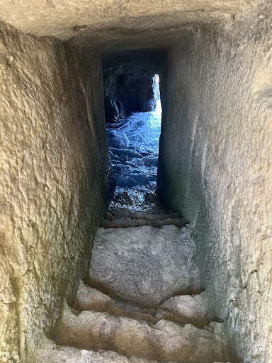 The place is interesting, but be prepared: before the staircase, you need to climb about 120-130 cm up onto a rock, then go a bit higher from there. Only after that you'll reach an old, slippery staircase leading downward.
