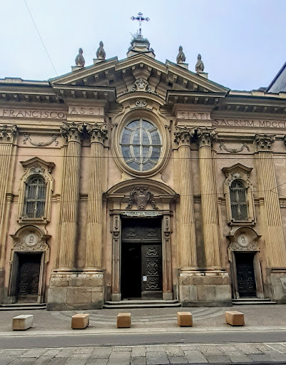 La chiesa di San Francesco d’Assisi, nella via omonima, deve la sua origine all’ordine francescano, che si stabilì a Torino nel XIII secolo. Collocati in una posizione centrale e strategica della città medievale, nei pressi della Contrada di Dora Grossa (l'attuale via Garibaldi) e del Palazzo del Comune, la chiesa e l'annesso convento dei frati Minori ospitarono fin dall'inizio le attività legate all’amministrazione civica e cappelle patrocinate da nobili famiglie e corporazioni di mestiere ed erano tenuti in così alta considerazione da avere in custodia l'archivio ed il tesoro del Municipio. Nel 1580, la chiesa acquisì particolare prestigio ospitando per sette anni la Sindone, trasferita da Chambéry e in attesa di una collocazione definitiva nel Duomo. Nel 1608, fu avviata una radicale ricostruzione come parte di un progetto di rilancio della città, divenuta capitale del ducato. Anche se furono in parte reimpiegate le strutture preesistenti, dell’edificio medievale sopravvissero solo pochi tratti murari e un affresco tardomedievale della Vergine, visibile sul terzo pilastro sinistro. A partire dal 1761, la chiesa subì un'importante ristrutturazione ad opera dell’architetto piemontese Bernardo Antonio Vittone (1704-1770) che trasformò presbiterio, cupola, coro e diversi altari, introducendo soluzioni architettoniche e decorative per aumentare la luminosità naturale all’interno. Al suo intervento, si devono i finestroni ovali sopra le arcate della navata centrale, i lucernari tondi nelle cappelle della navata destra, il finestrone ovale del coro e la decorazione della cupola con angeli e putti in parte dipinti e in parte in stucco. Vittone progettò anche l’altare maggiore “alla romana” in marmi policromi mentre sotto la mensa, protetta da una grata dorata, si conservano i resti di Sant’Innocenzo, trasportati dalle catacombe romane nel 1765. Un'ulteriore ristrutturazione avvenne nel 1863-65 quando Rodolfo Morgari ritoccò gli affreschi del soffitto del presbiterio e il suo allievo, Alberto Masoero, ridipinse la volta della navata centrale. Le navate laterali sono affiancate da cappelle devozionali, spesso realizzate su iniziativa di confraternite e corporazioni artigiane. Tra le più notevoli, si ricorda quella dei Santi Cosma e Damiano, particolarmente apprezzata per la bellezza e l'atmosfera mistica, opera di Francesco Martinez, pronipote di Filippo Juvarra. All'esterno, la facciata monumentale d'aspetto classico, attribuita a Mario Ludovico Quarini, allievo di Vittone, fu ultimata nel 1761 ed è scandita da lesene e colonne scanalate con un portale ad arco ribassato sormontato da un finestrone ovale e un grande frontone centrale. Originariamente affacciata su uno stretto vicolo medievale, oggi appare compressa dai palazzi circostanti, a causa dell’ampliamento di via San Francesco d’Assisi avvenuto a fine Ottocento. Durante la Seconda Guerra Mondiale, nelle incursioni aeree di novembre e dicembre 1942 furono incendiati il tetto e la sommità della torre campanaria, demolito parzialmente il soffitto, danneggiate le stuccature e infrante le vetrate istoriate. Tuttavia, i successivi restauri, che sarebbe opportuno rinnovare, riportarono l'edificio all'aspetto originario conservandone il valore storico e artistico, testimone dei cambiamenti anche urbanistici della città nel...