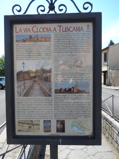 Breve tratto visibile dell'antica via Clodia (225 a.C. circa) al giorno d'oggi si potrebbe definire una strada di servizio, costruita per unire i centri dell'Etruria a Roma, ad uso commerciale per rifornire gli stessi centri estruschi, presente nella "Tabula Peutingeriana"; iniziava dalla odierna località La Storta passando per Bracciano, Sutri, Blera, Marta, Tuscania, Saturnia fino a Roselle, dove si ipotizza il ricongiungimento...