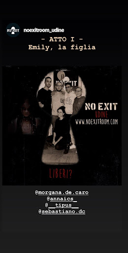 Read moreLa No Exit di Udine non delude mai. La frequento ormai da anni e ho provato ormai praticamente tutte le esperienze offerte, la trilogia della Villa del Padrone, Terrore a Derry, La Cripta di Anubi... Ogni volta l'esperienza è avvolgente e immersiva, la storia interessante e ben scritta, i puzzle e gli enigmi ben orchestrati, intuitivi al punto giusto per non risultare banali ma neanche tediosi o troppo ostici. In ogni dettaglio si sente la passione e l'attenzione di chi queste esperienze le ha pensate, realizzate, provate e perfezionate per voi giocatori. Non appena varcherai la soglia di Villa Emily verrai sorpreso e catapultato di forza all'interno della storia da attori in carne ed ossa che, con la loro interpretazione, renderanno la tua esperienza fin troppo reale. Entrare con cautela... uscire? Forse. Consiglio intanto di entrare appena possibile, non ve né pentirete... Se non quando, come me, avrete ormai preso parte a tutte le storie possibili e tornerete a casa malinconici con la speranza di perdere la memoria per poter tornare da capo a varcare quella soglia per la...