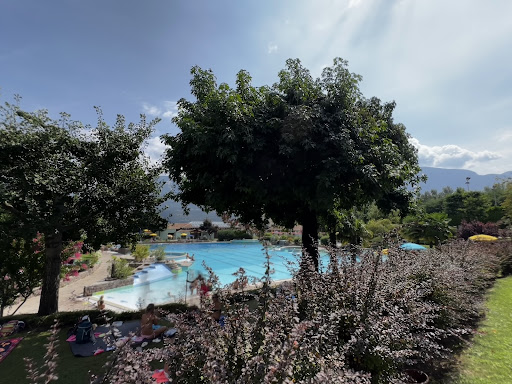 Amazing open-air swimming pool, immersed in apple tree fields. The pool is pretty large, enough to swim in it and for kids to play in it. There is a trampoline, starting block and some other things meant for children (like small waterfalls and climbing equipment). There are also a couple of smaller pools, thought for children. The area is almost entirely covered in grass, with several trees providing shade. There is the chance to rent beach umbrellas. There is also a cafe, accessible both from inside and from outside the pool. It serves drinks, coffee, ice cream and snacks and even quick bites for lunch. The price is very competitive for how good...