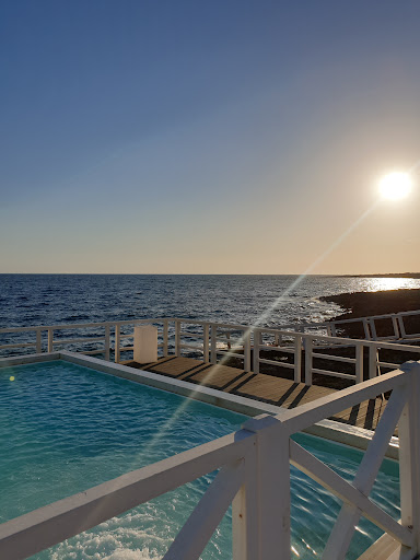 Read moreIl lido di per se non è male, il mare è ovviamente eccezionale, ma siamo in una zona rocciosa, e dal lido vi è una sola passerella per scendere a mare, sempre ovviamente affollata visto che l'acqua è subito alta. Vi è una piccola piscina con acqua di mare in continuo riciclo, comodissima per i bambini, ma non è per niente un lido adatto ai bambini vista la condizione di discesa a mare e l'assoluta assenza di spazio per poter giocare, inoltre non è adatto nemmeno a chi non sa nuotare. Il bar è carino, posizionato sul mare, bello, nulla da dire, se non che un apertas da portare costa 6€, ci sta se mi siedo al tavolo vista mare e mi porti anche degli stuzzichini, ma non se me lo fai da asporto in un bicchiere di plastica pieno di ghiaccio, tanto che con una cedrata ce ne fai 2! Motivazione principale della bassa votazione? Il prezzo per una giornata li, 35/40 euro in base alla settimana di agosto...assurdo, con 25 euro si passa una giornata in una spiaggia di sabbia bianca e mare cristallino 5km più a...