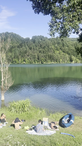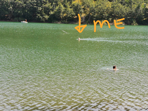Was recommended by a friend, what a lovely surprise as you come round the last bend in the road to see this lovely lake. There is paid parking about half way along the lakeside but if you all the way to the end there's a big free car park. I'd say take blankets and chairs if you can. People as bunched beneath the trees for some shade. Some others had brought there own parasols. Everyone has a picnic, never actually went to see what shops were about. I'd recommend swim shoes the "beaches" are stoney and have debris from the trees. Water was a good temperature, the depth increases quickly, really qiickly. If you walk round to the campsite you can pay a daily access fee to their maintained beach, also they have pedalos and kayaks for hire. Quite a few dogs about in and out of the water...