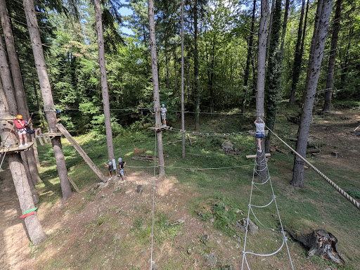 Really lovely place - small courses for younger kids from about 4/5 up which our 7 year old (when 8 & 9 year old friends) loved, and a couple of larger zipwire courses for older kids & adults. Like Go Ape but much cheaper!