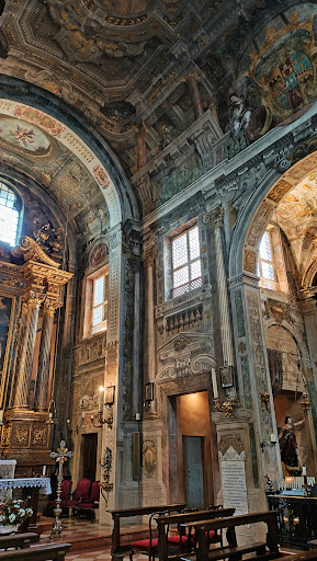 Read moreChiesa piccola chiamata Santuario, semplice ed elegante all'esterno, perfettamente fusa nel circolo dei muri che circondano la piazza, misteriosa barocca ma affascinante all'interno. Affreschi incredibili, ricordo non comune di quando le piccole chiese erano tappezzate di figure e colore che sfondavano le pareti e aprivano un'altra dimensione. Affreschi che spesso vennero cancellati dalla paura della peste e dalla moda delle statue. Ma quelle poche chiese che rimangono sono favole. Tesori racchiusi in architetture all'esterno modeste e quindi all'interno ancor più...