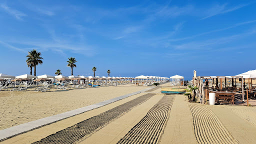 Read moreUn bello stabilimento balneare con tende, ristorante, bar sulla spiaggia e gazebo con biliardino e tavolo da ping-pong. Abbastanza ampio anche il parcheggio ma c'è comunque la possibilità di posteggiare lungo la strada a pagamento o in un parcheggio lato monte. Abbiamo pranzato al ristorante con alcuni amici di sabato. Il servizio è veloce, le pietanze nella norma (l'insalata di mare l'ho trovata decisamente striminzita con un po' troppa insalata e poco mare, mentre i primi piatti erano decisamente più abbondanti; molto buono il gelato con le fragole). Ho gradito molto il decaffeinato preso a fine pranzo. Il locale è poco rumoroso e, nonostante fosse una giornata afosa, c'era un bel venticello che rendeva il tutto...