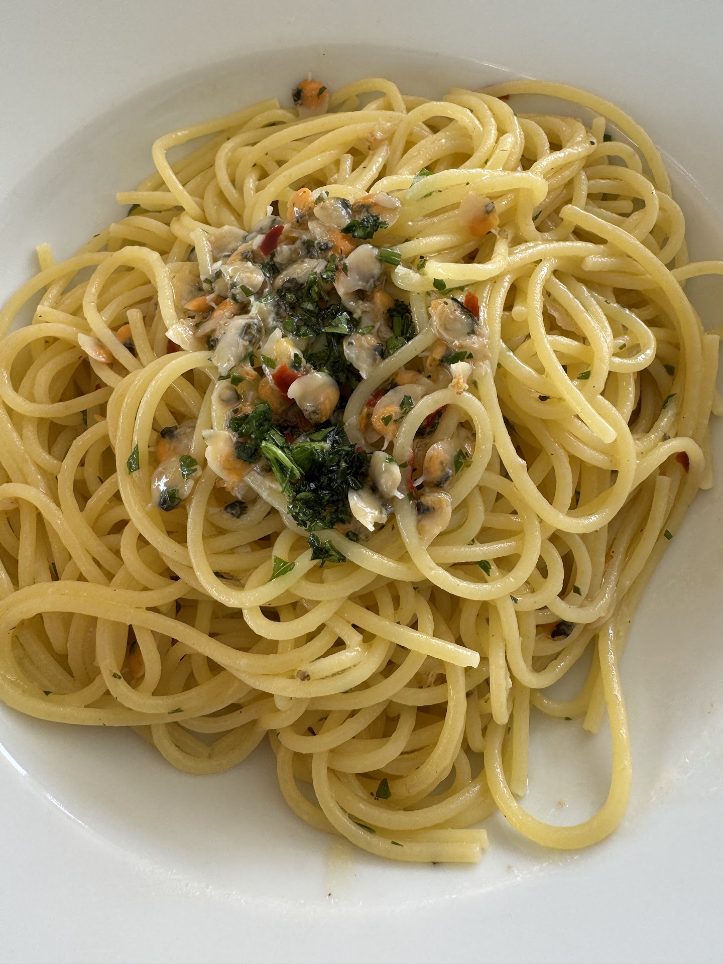 Ordiniamo poi 2 carbonare di mare, e 2 spaghetti allo scoglio, 2 fritture di dividere e una patatina.