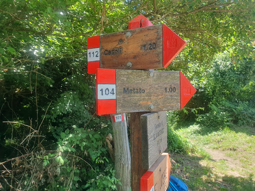 Si arriva al paese di Metato e visita ai ruderi del castello, il sentiero selciato ci riporta a Candalla: