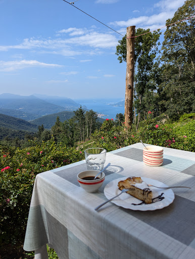 Read moreWir haben die Refugio Alpe Bois über einen Wanderweg aus Dumenza erreicht. Der Weg war an Stellen herausfordernd, sollte für geübte Wandernde jedoch kein Problem darstellen. Angekommen erwartete uns ein wunderschönes Panorama, sowie eine kleine Zuflucht mit sehr herzlicher und aufmerksamer Bedienung, die Rifugia Alpe Bois. Wir hatten tollen Cafe, ein Stück leckeren Apfelkuchen und diverse andere Getränke. Es wurden uns mehrere Karaffen Wasser kostenlos gebracht und wir durften unsere Wasserflaschen selbstverständlich auffüllen. Die Küche war noch nicht geöffnet, was uns aber vorher gesagt wurde. Aber die Polenta, die gerade vorbereitet wurde, duftete fantastisch!
