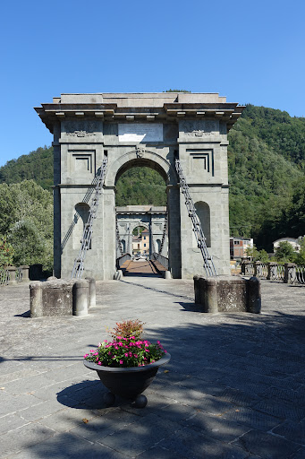 Read moreÈ il Ponte più famoso dopo quello vicino del Ponte della Maddalena (è conosciuto con un altro nome ma è innominabile ...) fu progettato da Lorenzo Nottolini, famoso architetto del tempo, sul fiume Lima su commissione di Carlo Ludovico di Borbone e realizzato tra il 1844 e il 1860. Fu', per l'Italia, un progetto avveniristico perché abbinava ad una struttura classica, con due Archi di Trionfo alle estremità della struttura, l'utilizzo delle tecniche del ferro con catene, tenute in tensione da un sistema sotterraneo di una certa complessità, e calpestio in legno ... ed oggi così lo vediamo nonostante i danni provocati dalla guerra ... ahimè, sempre la stessa ... la 2a Guerra Mondiale (fu' minato ma fortunatamente i danni si limitano solo al piano...