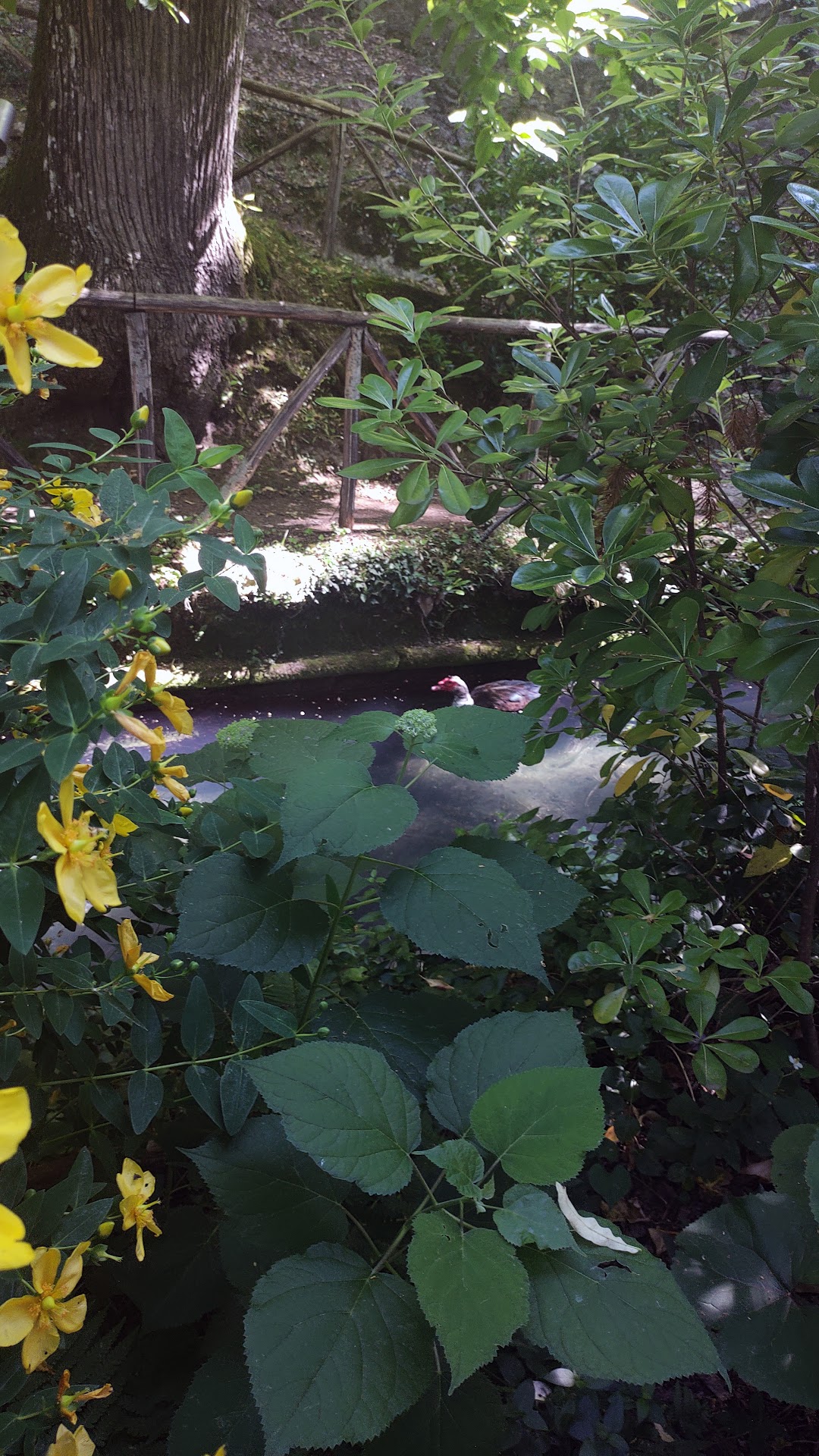 Read moreLuogo interessante, si accede dalla strada entrando in questo piccolo atrio e versando 1 euro per ciascun visitatore. In realtà non c'era nessuna persona a controllare ma per correttezza abbiamo inserito i soldi in una cassetta e siamo entrati. All'ingresso c'è questo grande bacino idrico con all'interno tanti pesci, alcuni di dimensioni veramente importanti e tantissimi fiori con vasi disseminati un po' ovunque. Tutto abbastanza curato e ben tenuto. Siamo capitati di lunedì pertanto non c'era praticamente nessuno quindi abbiamo girato liberamente. Il luogo è veramente bello e rilassante. All'interno del lago artificiale ci sono anche delle papere che si muovono liberamente oppure stazionano ai lati. Verso il fondo invece c'è un giardino molto curato e un corso d'acqua che gira intorno dove ogni tanto qualche papera gira. Ci sono poi in alcuni punti dei ponticelli per passare da una parte all'altra. Abbiamo poi notato che in un altro spazio, delimitato da un muro e da un cancello aperto c'era un altro piazzale con palco annesso dove probabilmente di sera faranno delle manifestazioni, il tutto molto curato. Ci sono anche dei bagni pubblici dove abbiamo potuto anche constatare piacevolmente che al loro interno c'era sia la carta igienica che sapone per le mani e carta per pulirsi. Tornando nel giardino poi abbiamo perso il percorso per salire verso la collezione delle ortensie che si trova più in alto. Il luogo è veramente molto molto bello, ci sono molte panchine anche per sedersi e rilassarsi, peccato che faceva molto caldo e pertanto c'era molta umidità a causa anche della presenza di molta acqua, cosa da considera dato il periodo estivo. Consigliata comunque la visita se...