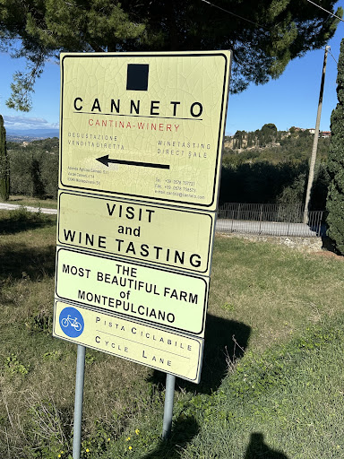 We walked to this winery from town seeing that it offered splendid views and hoped to learn and have a tasting. It’s located on a public road, and as we approach, we don’t see anyone there, they are not open, the door is locked. There are a row of benches and picnic tables on the side of the road, so we decided to open a bottle we had already procured and eat a sandwich as we had planned to continue hiking the trail past the vineyard to another winery that might be open (this is an agrotourism and cycle road). About 20 minutes into our wine and sandwich, we are approached by a small blonde woman who says “this is not a public table, this is a winery!” We said “we are so sorry, we saw the benches and stopped, we did not know we are on private property, it is not labeled.” I was about to ask her when they would be open so we could come back, but before I could speak, she said “you did know you are on private property, you are surrounded by vineyards!” Ummmm…no kidding. We’re in Tuscany, surrounded by vineyards…and country roads. I said to her “it’s not labeled private on the map.” She said “it is! And you know.” So I said “show me where it says this, we turned down this road that shows public on our map, we see these benches, so we sit. We are not from here and are used to roads being labeled private, if they are private, back in the US.” She said “maybe it’s different here.” And I said “Right, so if it is different, you can explain to us…” but she stormed off. Now I will tell you, maybe we were sitting on privately owned benches, but we were on a road clearly labeled as a cycling lane. Instead of being kind to 2 tourists, she wanted to yell at us. What a sad unhappy person. If she had simply invited us to come back during their open hours, we would have happily come back. Or asked if we were lost, which more than half the time, we are lost! And fumbling with Google Maps. We’re staying in Montepulciano for a week, celebrating our 20 year anniversary, and planning to go on wine tours. Canneto Winery is clearly lacking hospitality and would rather chase people off than invite them to come and learn and taste what...