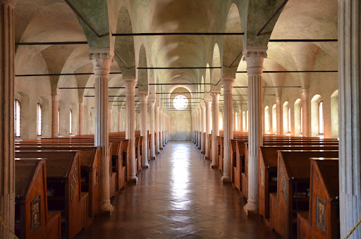 Read moreLa Biblioteca Malatestiana è senza dubbio uno dei gioielli culturali più preziosi che abbia avuto il piacere di visitare. Questo luogo affascinante è una testimonianza straordinaria della ricca eredità storica e letteraria dell'umanità. La biblioteca si trova al primo piano di un vecchio convento francescano del XV secolo, voluto da Novello Malatesta, donata poi ai cittadini di Cesena, ed ha attraversato questi secoli superando le invasioni napoleoniche, la seconda guerra mondiale ed altri eventi nefasti. La sala è divisa in tre navate e le colonne con volte a botte ed a crociera ed ogni colonna ha un capitello personalizzato e la luce entra da delle finestre poste lungo il perimetro della struttura e da un rosone in fondo alla navata centrale. All'interno della sala vi sono delle strutture in legno utili a poggiare e leggere i pesanti manoscritti antichissimi, che sono bloccati a delle catene in metallo. Molto vasta la collezione di libri antichi e preziosi e la cura con cui sono conservate indica il rispetto e l'amore che la cittadinanza ha per questo luogo. Una parte della biblioteca è strutturata in modo da poter consultare alcuni dei libri presenti, contenuti all'interno di bacheche con vetri...