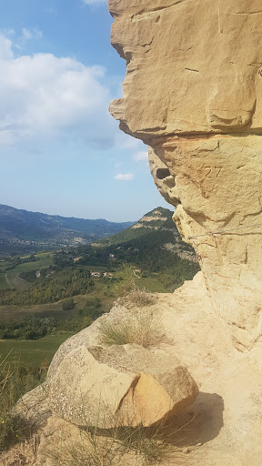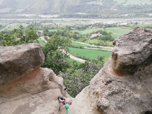 Read moreUna ferrata diversa dal solito in un luogo fantastico. Dico diversa perché le prese sono scavate nell'arenaria, una pietra che sulla carta è molto brutta per arrampicare, ma che regala un bel colore giallo alla parete. In verità la via è ben fatta e tante prese sono tasche che permettono di essere usate nella maggior parte del tragitto, se si riflette e ci si prende il proprio tempo non servirà usare molto il cavo, nonostante la verticalità pressoché continua. Una chicca per i più coraggiosi sarà cercare e attraversare la cengia (credo sia quella intermedia?) orizzontale, dove per risolvere lo strapiombo bisognerà sporgersi nel vuoto di schiena, affidandosi al cavo con buona tenuta di braccia e core. Una volta in cima, godetevi la vista e il bosco di querce che ne...