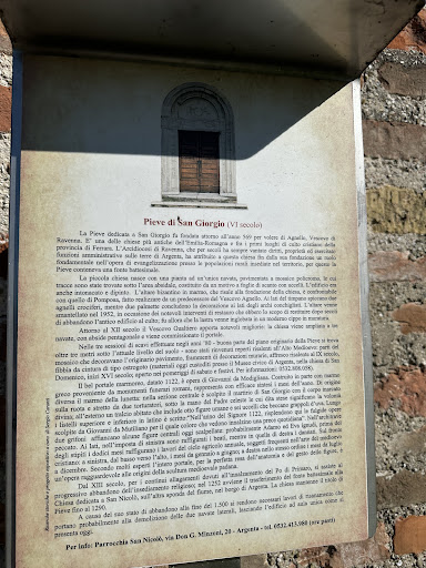 La Pieve di San Giorgio è un luogo molto caro agli abitanti di Argenta , antica chiesa millenaria che avrebbe bisogno di una ristrutturazione anche molto semplice ma accurata soprattutto il portale in marmo si stà disgregando anno dopo anno ed è strano come la soprintendenza sempre attenta ai siti storici non disponga un recupero di tale bellezza unica nel suo genere nel territorio ,si può trovare qualcosa di simile solamente al duomo di Ferrara oppure a Venezia. Scrivo questo affinché le autorità competenti si prendano cura di questo tesoro artistico del comune di Argenta nella provincia di...