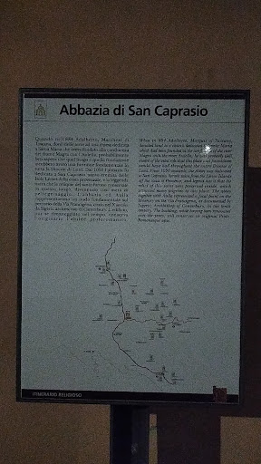 Abbazia di San Caprasio ti racconta la storia,accoglie i pellegrini che percorrono la via Francigena mettendoli a proprio agio e salutandoli fraternamente il giorno dopo quando riprendono il cammino.La chiesa di San Caprasio e anche parrocchia e accoglie amorevolmente a braccia aperte i propri parrocchiani e chiunque entra in chiesa anche per recitare una sola preghiera.Partecipare alla Santa Messa e una vera benedizione perché ci si sente una Comunità in preghiera.Passando di qui e`bene entrare per raccogliersi e meditare sulla nostra vita...è poi quasi obbligatorio visitare tutte le bellezze antiche al suo interno per capire il periodo storico vissuto da...