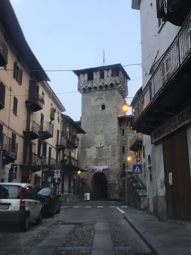 È una imponente torre-porta con la presenza di un orologio. È stata costruita nel 1300 circa dal castellano della cittadina e un tempo esisteva anche un ponte levatoio. In cima ad essa si possono notare gli stemmi dei Savoia e degli Estensi. Attualmente nel posto di guardi è presente la biblioteca civica e salendo la stradina che sale si notano diversi edifici con vecchie finestre, decori e porte ormai chiuse che ricordano un...