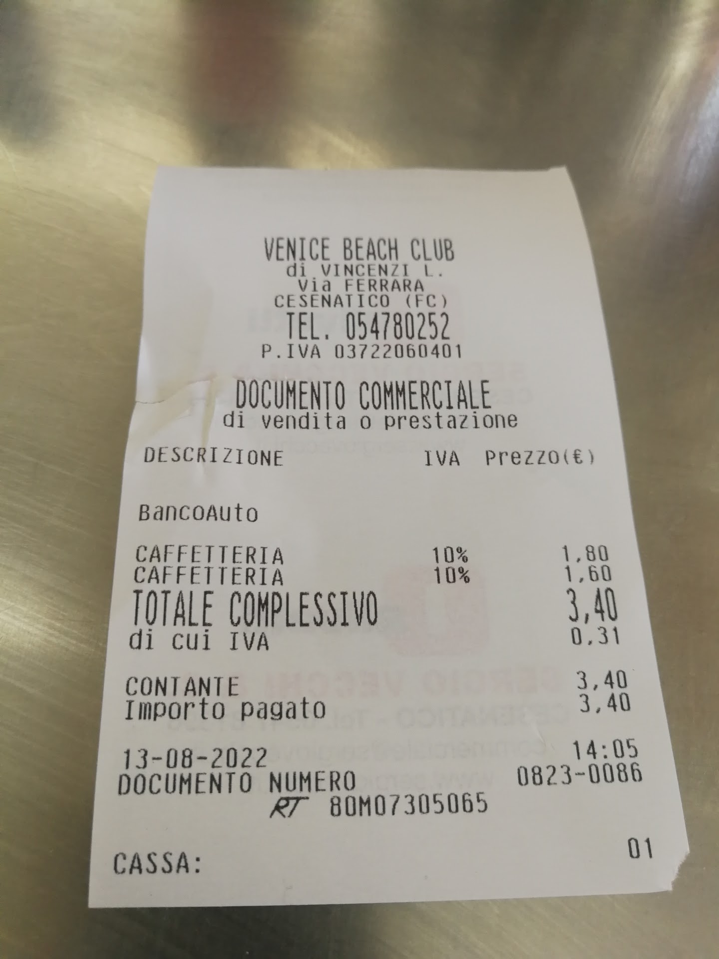 Read morePremetto che il mio giudizio vale solo per quanto riguarda il bar nn il bagno.siamo venuti 4volte a fare la aperitivo le prime due volte ci siamo trovati stupendamente ci ha accolto un signore che a livello di bar ci sapeva fare davvero ottimo interlocutore e sapeva ascoltare e capire i clienti.ottimo.la terza volta siamo capitati e ci ha servito una ragazza che ci ha fatto pagare uno spritz 7euro rispetto ai 5euro dei giorni precedenti.premetto che facevamo 2/3 giri a al giorno. La 4 volta alla mia domanda di come mai del aumento del prezzo mi è stata data una risposta veramente assurda cioè che se si ordinava lo spritz in orario aperitivo costava 2euro in più rispetto k se era preso in altri orari.per questo nn siamo più tornati perché ci sta sbagliare ma noi ci siamo anke sentiti presi in giro posto esterno carino peccato per l equivoco nn...