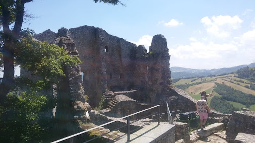Read moreUna visita a questo fortilizio 🏰 resta a mio avviso imprescindibile per la grande importanza delle vicende storiche che lo hanno riguardato (e che difatti ricordo di aver studiato con interesse sin dai tempi della scuola 👨🏻🏫📚). Spinto dunque da grande curiosità, di recente mi sono recato a Canossa per poterlo ammirare di persona. Giunti in loco verso le 11.45 di una bella domenica di giugno, abbiamo lasciato l'auto 🚘 lungo la strada principale incamminandoci 🚶🏻♂️ quindi sul sentiero che conduce alla biglietteria (a proposito, 6 euro 💶 il prezzo del ticket 🎫 che consente di ottenere un piccolo sconto per l'accesso al vicino castello di Rossena). Proseguendo siamo poi arrivati al centro visitatori dove abbiamo incontrato Ingrid 👩🏻, la bravissima guida che ci ha accompagnati durante il nostro giro 🚶🏻♂️. Molto interessante e ben curato l'allestimento museale, ricco di reperti e spunti utili per comprendere al meglio la struttura nel suo complesso. Terminato il tour guidato, ci siamo avventurati tra le rovine della fortezza 🏰; non si può dire che resti moltissimo, tuttavia fascino e suggestione non risentono di ciò in alcun modo. Degno di nota pure il panorama 🌄 apprezzabile dalla cinta muraria 🧱. Devo però rilevare una grossa pecca, ovvero l'assenza di un'area parcheggio 🅿️ dedicata (come accennato sopra, siamo appunto stati costretti a inventarci un posteggio "di fortuna"); comprendo che le peculiarità del territorio rendano difficoltosa l'individuazione di uno spazio apposito, eppure il problema permane. A parte questa precisazione, VISITA ASSOLUTAMENTE CONSIGLIATA 👍.