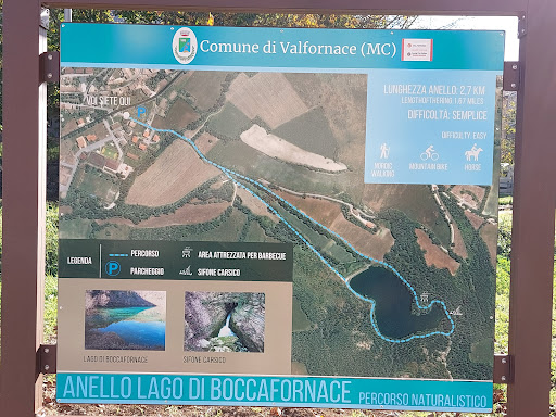 Lago di Boccafornace. Il suo bacino è artificiale ed è alimentato da una sorgente carsica con flusso intermittente. È un paradiso naturale di pace e tranquillità, che si può facilmente raggiungere a piedi partendo dal centro storico di Pievebovigliana. Si può intraprendere il percorso ad anello che costeggia il lago. Si tratta di un sentiero breve, semplice e adatto a tutti, che porta alla scoperta di un delicato e affascinante ecosistema. Una passeggiata da affrontare dunque con calma, che regala sorprese a seconda delle stagioni in cui lo si visita. Nei periodi di secca è possibile visitare una piccola grotta naturale, mentre in inverno da non perdere è il sifone carsico che vi si crea. Durante l’autunno il bosco mette in mostra un foliage spettacolare, mentre in primavera sorprende la meraviglia...