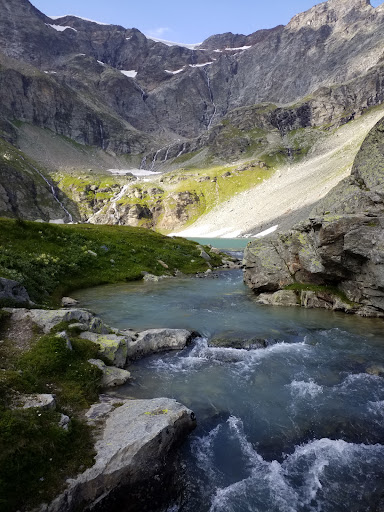Read moreUna passeggiata non troppo impegnativa con un dislivello di 500-600 metri. Salendo si gode della vista delle montagne verso il confine francese. Il laghetto con uno splendido colore celeste appare un po' all'improvviso e soprattutto nelle giornate soleggiate regala colori bellissimi nel contrasto con le rocce e il sovrastante ghiacciaio. Anche se il percorso è abbastanza facile consiglio di andare con una guida perché soprattutto il sentiero di ritorno è attraversato da alcune valanghe rocciose che ne...