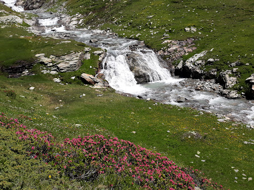 Read moreSiamo partiti da località Bonne, frazione Valgrisenche, bivio per Surier. Si sale sulla strada sterrata che si addentra nel vallone San Grato, si oltrepassa il villaggio Grand Alpage, poco dopo al quale si trova il monumento dedicato agli operai morti a causa di una valanga. Si raggiunge un alpeggio, si superano dei ponticelli, uno in legno e uno con arco di pietra. Si prosegue nel vallone con bei panorami, di fioriture di rododendri, cascatelle. L'ultimo pezzo è più duro, con sentiero che sale decisamente in mezzo ai sassi. Si arriva ad una piccola cappella e dopo pochi metri si vede il lago formato da ghiacciai. Portarsi da bere e da mangiare al seguito. Dislivello 540 metri, durata 2 ore e un quarto (mi fermavo...