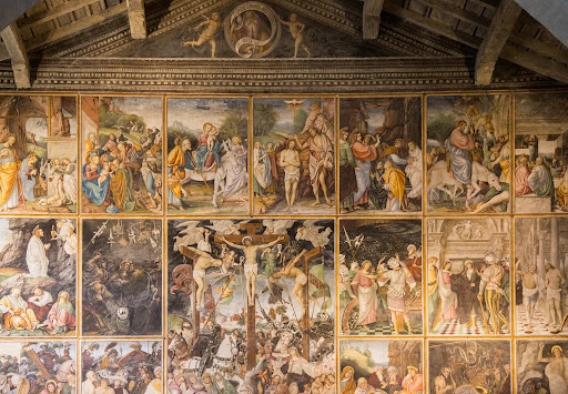 Read moreavevo già visto questa bellissima chiesa e ci sono tornato in occasione della mostra dedicata a Gaudenzio Ferrari per ammirare ancora una volta il bellissimo ciclo di affreschi che si trova sulla parete che separa la parte destinata ai religiosi da quella dove sostavano i fedeli. realizzata a fine '400 Santa Maria delle Grazie si trova a circa 100 metri dal Palazzo dei Musei, altra sede della mostra, e proprio di fronte alla funivia che porta al vicino Sacro Monte - anch'esso incluso nel percorso di visita della mostra -. sorge accanto alla piazza Ferrari, dove campeggia una statua dedicata al pittore. sul lato opposto si può vedere la casa dove soggiornò qualche anno. gli affreschi , da lui realizzati nel 1513, tengono tutta la grande parete e raccontano in 21 riquadri storie della vita del Cristo, con alcune parti in rilievo che rendono ancora più scenografiche le scene. al centro campeggia una grande Crocifissione. sotto la parete, nella parte sinistra, in una nicchia, vi sono altri affreschi realizzati dal Ferrari. la nicchia di destra è meno leggibile. per il periodo della mostra è stato allestito un ponteggio decisamente brutto da vedere ma che al contempo consente di visionare più da vicino il grande affresco. sulla sinistra si trovano 5 piccoli pannelli informativi che illustrano altrettante chiese dove si possono ammirare apparati decorativi simili. per accedere al ponteggio occorre dotarsi del biglietto che si può fare al palazzo dei musei. costa 15€ e dà accesso al museo, al ponteggio e alla funivia. gratis con abbonamento musei. la chiesa, sempre aperta anche in altri periodi, fino al 16 settembre - data in cui si chiude la mostra - è visitabile dal martedì alla domenica dalle 10 alle 18. consigliatissima la visita abbinandola alle altre sedi della mostra - Sacro Monte, cappella di Loreto e palazzo...