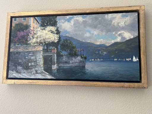 My husband and I visited Lake Como in 2023 for our honeymoon and fell in love with Varenna. For our one-year anniversary, we knew we wanted to return to Varenna and buy some art. We had a very short window to travel from Milan to Varenna, so we started searched for art galleries online. When we saw Paolo’s art, we immediately knew his gallery was the only one we wanted to visit, and we weren’t going to leave without buying something from his collection. We sent a text to see what time they would open and they were so flexible that they opened their gallery an hour early for us since we didn’t have much time.