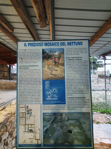 Read moreQuesto sito archeologico fu completato nel 1998 e conserva i resti delle terme romane dell'antica Histonium tra cui diverse vasche e cisterne con marmi pregiati e mosaici più importanti di tutta la costa Adriatica. C'è una rappresentazione di Nettuno e le quattro Nereidi tra cui due in sella a cavalli, una in sella ad un cavallo marino ed una in sella ad un drago. I mosaici sono bicromatici, quindi le tessere di fondo chiare insieme alle tessere nere mette in rilievo i particolari anatomici dei disegni. Purtroppo non sono mai riuscita a scoprire se si può visitare in quanto il cancello è sempre chiuso. Però, se vi arrampicate sul muretto, riuscirete a vedere i mosaici e le vasche. Consiglio di andare quando c'è il sole in modo tale da trovare più luce perché le terme sono coperte...