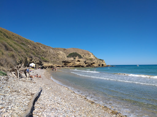 Read moreBellissima spiaggia a destra rispetto a punta caderci guardando il mare, si scende da un sentiero che parte poco prima prima della sommità del promontorio con scale rudimentali ( attenzione in alcuni punti x la presenza di picchetti metallici o bastoni che emergono dal terreno dove questi scalini sono deteriorati) praticabile da adulti ma anche da bimbi fai 3-4 anni in su. Spiaggia di sassi misto a sabbia, in alcuni è difficoltoso entrare in acqua x la presenza di grandi ciottoli. Acqua pulitissima, falesia di arenaria con arbusti, fare attenzione a diversi scogli sia immersi che emersi localizzati alle estremità della spiaggia, nei giorni di vento da nord est risulta più riparata rispetto alla spiaggia di punta caderci dall'altro lato del promontorio. Assenza di bar o stabilimenti, ma meglio così rimane più selvaggia ed incontaminata!...