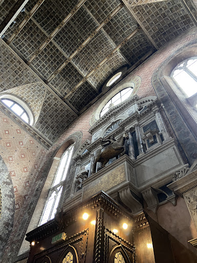 The interior houses a rich collection of art, including works by Tintoretto and Paolo Veneziano. The church also contains the tombs of several notable figures, including the renowned Venetian doge, Francesco Morosini, and the composer Benedetto Marcello.