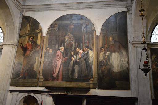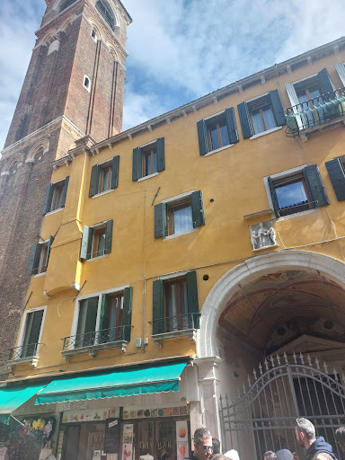 Qui a Rialto operò lo Scarpagnino, dopo aver già impresso il marchio del suo modo di costruire in Dorsoduro, dove ebbe l'incarico di progettare San Sebastiano. Lo stile rinascimentale è visibile all'interno, poiché l'esterno, distrutto in passato da un incendio, non fu ritenuto acconcio urbanisticamente ad esser dotato di facciata. Ne resta la visione dell'originario campanile trecentesco e l'ingresso con arco a tutto sesto, dotato di un bel portale. Ma è lo splendore delle decorazioni pittoriche, ospitate all'interno che fa della chiesa di San Giovanni elemosinario un autentico gioiello della Venezia cinquecentesca. Quivi lavorarono Tiziano, il Pordenone, Palma il giovane, Leonardo Corona ed altri artisti oggi affatto misconosciuti ai più. Gli affreschi della cupola raffiguranti la danza degli angeli sulle nubi avvolgono lo sguardo e fanno roteare gli occhi sin dove gli stessu possono arrivare poi è solo infinito e nulla più ed il Pordenone doveva esser ben conscio di aver disegnato la meraviglia delle meraviglie. Da par suo, il Tiziano non fece altro che assegnare al Santo una compostezza morale e formale alla sua figura, consegnandoci una composizione perfettamente idonea a rappresentare le virtù di Giovanni l'elemosimiere. Il colore ed il rigore formale dei dipinti di Palma il giovane costituiscono il tratto distintivo di un artista sommo che descrive con le sue pennellate storie e narrazioni di forte impatto emotivo. Un ringraziamento all'associazione Chorus per aver consentito a chi lo desidera di immergersi in questa splendida...