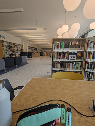 Un altro punto negativo riguarda la disponibilità dei posti a sedere. Purtroppo, non ci sono abbastanza posti, soprattutto se si cerca di lavorare comodamente. Al piano terra c'è un grande tavolo, ma le prese di corrente non funzionano, il che rende difficile utilizzare il proprio computer. Inoltre, la parte nuova della biblioteca è esteticamente piacevole, ma i tavoli sono davvero minuscoli e poco funzionali per chi ha bisogno di spazio per lavorare.