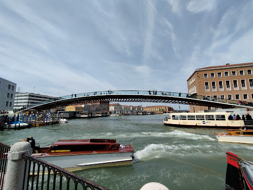 Traditionally there were three pedestrian bridges crossing the Grand Canal - Rialto, Scalzi and Accedemia. Crossing the canal elsewhere was done by vaporetto (waterbus) or traghetto. Constitution Bridge was designed by Santiago Calatrava and opened to the public in 2008. Its official name was adopted to celebrate the 60th anniversary of the Italian constitution in 2008. Tourists and locals in Venice still often refer to it as the Calatrava Bridge. While it is a very modern structure in my view it it fits in quite well and does not clash with a city with so many historic buildings. If you found this review helpful please click on the 'Like'...