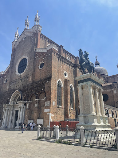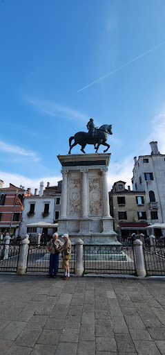 Read moreEn el incomparable marco del Campo San Giovanni e Paolo, junto a la Basílica de San Zanipolo y a la Scuola Grande di San Marco, y mirando al río Dandolo, encontramos este magnífico monumento ecuestre, que rinde homenaje al condottiero Bartolomeo Colleoni, ex capitán general de la República y mecenas de la misma. Diseñado por Verrocchio, el escultor no pudo ver su trabajo concluido, ya que se presentó al público en 1506, casi veinte años después de su fallecimiento, siendo finalizado por el escultor Alessandro Leopardi. La obra, fuertemente idealizada, está inspirada en el Gattamelata de Donatello, y a pesar de su perfección, varios autores señalan que de haber podido ser rematada por el propio Verrocchio hubiera resultado aún más magnífica de lo que es. Esculpida en bronce, merece especial atención que reparemos en todo el entramado de músculos y venas que nos muestra el animal, ya que Verrocchio fue un gran estudioso de la anatomía de los caballos. Destacar también que la escultura solo cuenta con tres apoyos. Magnífica obra que, sin duda, merece que le...