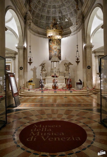 The church San Maurizio now houses the Museo della Musica, museum of baroque instruments, composers, and music of Venice. The story of the golden age of making string instruments in 18th century Venice and its studios or “schools” of Italian making of musical instruments, the differences in design and construction, the way they were made and the evolution of musical style. With this beautiful building, Venice has been given a valuable space in an interesting place to show off its artistic musical splendor. This church of San Maurizio was built in a Neoclassical-style, and Family Candian (known as Sanudo) is responsible for the construction of the church of San Maurizio and Lazzaro. Deconsecrated church is located in the campo San Maurizio in the sestiere of San Marco. Her history is as interesting as everything in Venice. In the middle of the 15th century, the ancient bell tower was demolished to allow the construction of the grand Palazzo Bellavite, whose façade was painted as a fresco by Paolo Veronese. Dionisio Bellavite, a wealthy merchant, actually received a concession for the area and permission to remove the bell tower in exchange for paying an annual tax in favor of the church of San Maurizio, a tax that Bellavite continued to pay until 1564. In 1806 the church was partly demolished and then rebuilt according to the design of Antonio Dieda and the architect of La Fenice, Gian Antonio Selva. The Museo della Musica is an exhibit dedicated to one of the artistic expressions that has contributed to the greatness of Italian culture, the making of stringed instruments. It features period instruments, and documents, including exhibits on Antonio Vivaldi, but also documents on Amati, Giovanni Battista Guadagnini, and Francesco and Matteo Goffriller. Valuable exhibits are Bass by Niccolò Amati and Bass by Carlo Bergonzi...