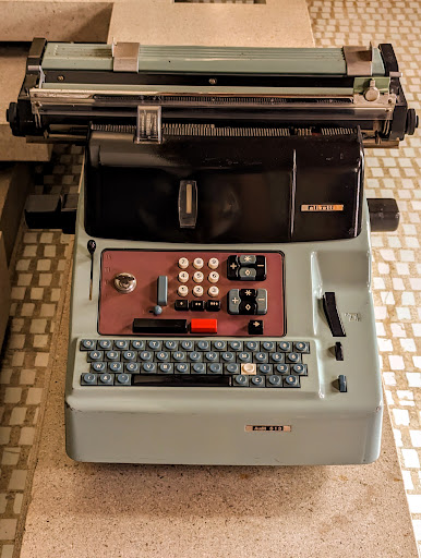 The one extraordinary object on display is the astonishing Audit 513 (see photos), which combines an electromechanical calculator with a typewriter, apparently even handling form letters.