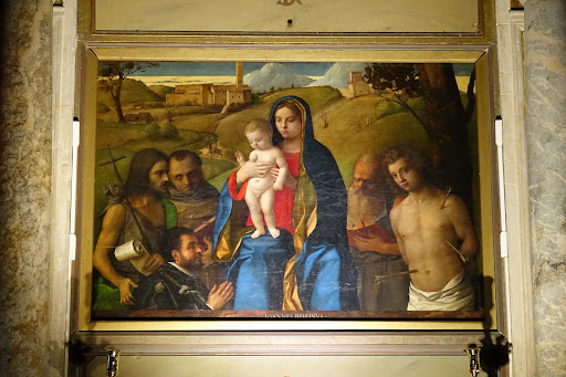 There are several notable paintings but my favorite was the Virgin and Child Enthroned, by Fra Antonio da Negroponte. The color, details, and overall serenity are a wonderful complement to the church's general atmosphere. You can pay 0.20 euros to have a light on for about three minutes. While it's not absolutely necessary, it does let you enjoy the work more, and the funds help...