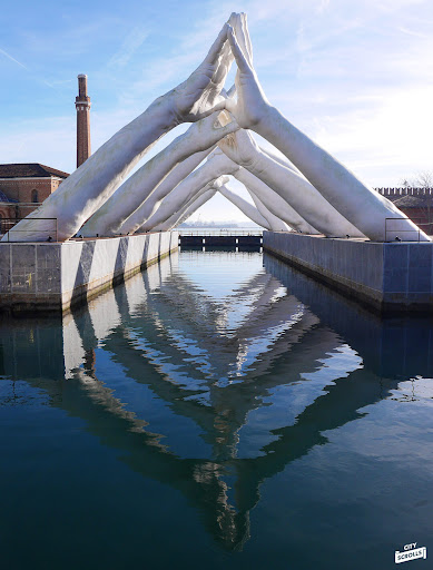 Be sure to venture eastward as well, passing the older defenses (Torre dell'Arsenale) to reach the two large docks used for shipbuilding. Above the first dock, you'll find Lorenzo Quinn's monumental sculpture, 'Building Bridges,' which features six giant pairs of hands joined together atop the dock. This impressive work of art symbolizes six universal values of humanity: friendship, faith, help, love,...