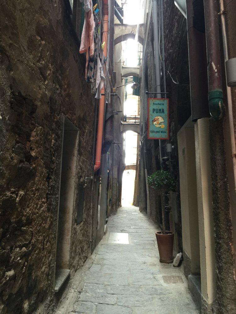 The view of Cinque Terre immediately off of the train makes me feel like we just went back to old world Italy, the town is quite small, it is surrounded by hills lined with gorgeous greenery, grape vines and as I expected most of the buildings within the main part of town appear to be stacked onto each other. I guess that would make sense being everything is built into the hillside. The sidewalks are narrow, the business district is lined with shops, it is typically very busy with tourists and locals. The only form of transportation in this town is your feet and being that it is built into the hillside there are many many uphills and steps throughout.