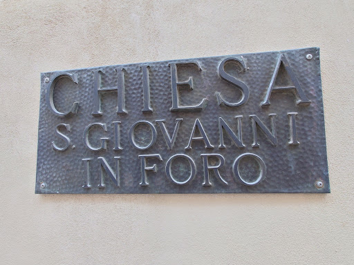 La iglesia de San Giovanni se construyó originalmente sobre el decumanus maximus, la principal vía romana, ahora Corso Porta Borsari. El término "in Foro" se refiere a la ubicación frente al Foro, el centro de la ciudad reconstruido en forma románica tras el incendio que destruyó gran parte de Verona en 1172, un hecho anotado en las palabras de un tríptico de tablillas de mármol frente a Corso Borsari: "A-DNI MCLXXII combusta est civitas Verone". Durante la Edad Media fue la iglesia parroquial de una gran área que se extendía desde Via Sant'Eufemia hasta la antigua Via San Salvatore y el río Adige. En 1902, las obras de consolidación del campanario sacaron a la luz importantes restos carbonizados que datan del incendio, con elementos de crenulaciones, rendijas de fuego y un puente levadizo: evidencia de que la estructura fue reconstruida a partir de una antigua torre defensiva de la ciudad. Varios años más tarde, una caída de yeso en las paredes exteriores de la iglesia descubrió la estructura románica subyacente en bandas de piedra de toba y adoquines. La eliminación del yeso de las paredes interiores reveló algunos frescos, incluida una Madonna amamantando al niño, San Juan Evangelista y San Juan Bautista, que datan de las décadas de 1360-1380. Durante la era del Renacimiento, la iglesia aparentemente perdió importantes estructuras exteriores y terrenos. La entrada actual está casi oculta entre los edificios a lo largo de la calle de la ciudad, mientras que en un momento hubo una puerta que conducía a un atrio cerrado: las obras para reconstruir la calle mostraron la presencia de cuatro bases de columnas originales en mármol rojo. El interior románico original ha sido modificado por reformas realizadas en el Barroco y la época moderna, pero aún conserva pinturas de Antonio Giarola (conocido como "il Cavalier Coppa") y Claudio Ridolfi. En un nicho de la pared izquierda hay una escultura de la Virgen con el Niño, que data de finales del siglo XIII-XIV, con la escritura gótica "Mons. Pulia me fecit, orate me pro eo" (Monseñor Pulia me hizo: rezar para mi). La inscripción se refiere a un artista y escultor ecléctico conocido como Maestro Pulia o Poia, muy estimado en la corte de la familia Scala y nombrado pintor de iglesias en el testamento de 1298 del obispo Bonincontro. La interpretación realista de la Virgen muestra el esfuerzo del artista por ir más allá de la rígida iconografía típica de la escultura anterior. En el exterior, el arquitrabe del portal renacentista lleva una inscripción tallada con el nombre del donante, Benedetto Rizoni, famoso prelado y comentarista de las Escrituras, con el "erizo desenfrenado" de los brazos de la familia. Sobre el portal hay tres estatuas de Girolamo Giolfino, que representan a San Juan Evangelista en el centro, con San Pedro y San Pablo a izquierda y derecha. Nicolò, sobrino de Girolamo, pintó el fresco en la luneta que muestra a San Juan...