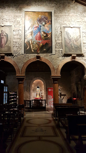Read moreJedyny kościół w Weronie po wezwaniem św. Jana Ewangelisty graniczący z rzymskim forum. Jest prawdopodobnie bardzo stary, możliwe, że pochodzi z epoki paleochrześcijańskiej, ale po raz pierwszy wspomniano o nim w dokumencie z 959 r. W 1172 r. został istotnie uszkodzony przez pożar miasta. Pod koniec XIV w. we wnętrzu powstał cykl fresków, z których zachowały się tylko przedstawienia Madonny Karmiącej, św. Jana Chrzciciela i św. Jana Ewangelisty. Do wnętrza wchodzi się od Via Porta Borsari przez skarb kościoła - renesansowy portal Hieronima Golfino, w którego lunecie znajduje się fresk Nicoli Giolfino przedstawiający św. Jana na wyspie Patmos. Fasada jest typowa dla werońskiego stylu romańskiego z rzędami kwadratowych ciosów tufowych na przemian z rzędami cegieł i dodatkiem kilku warstw bruku w górnej części ściany oraz kamiennymi płytami w części dolnej. W północnej stronie kościoła znajduje się dzwonnica na podstawie kwadratu. Kościół zbudowany jest na planie prostokątnej sali, poprzedzonej przedsionkiem, od którego jest oddzielony kolumnadą. Sala nakryta jest dachem dwuspadowym z odsłoniętymi więźbami, atrium nakrywa drewniana attyka ze zdobionymi kasetonami, a apsydę nakrywa obniżone sklepienie krzyżowe. Wnętrze ma surowy wygląd, z odsłoniętymi ścianami.Kościół ma bardzo unikalną cechę: łuk triumfalny górujący nad głównym ołtarzem i chór są lekko pochylone w lewo (os trony patrzącego) na pamiątkę Jezusa, który umarł na krzyżu z głową pochyloną na prawo. W ołtarzu chóru obraz G. B. Rossiego znanego jako il Gobbino przedstawiający Jezusa ukrzyżowanego z Matką Boską Bolesną u stóp, św. Janem Ewangelistą, św. Dominikiem oraz św. Franciszkiem di Paola i św. Franciszkiem z Asyżu. Na suficie widać fresk, w którego centrum ukazany jest Duch Święty jako gołębica wylewająca siedem darów na lud Boży. Nad ołtarzem znajdują się nisze z 8 posrebrzanymi posągami z brązu przedstawiającymi trzy Cnoty Teologiczne i cztery Cnoty Kardynalne. Pomiędzy kaplicą Madonny i kaplicą św. Teresy znajduje się wizerunek z XIII wieku z łacińskim napisem w stylu gotyckim. W kaplic św. Teresy znajduje się przeszklony...